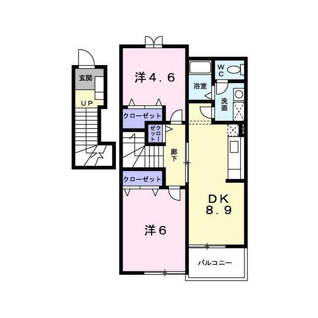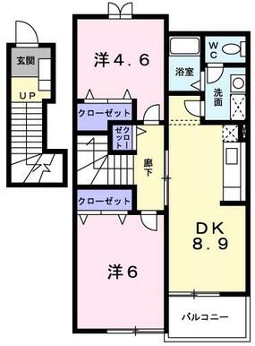 2DK(DK8.9洋室6洋室4.6) |